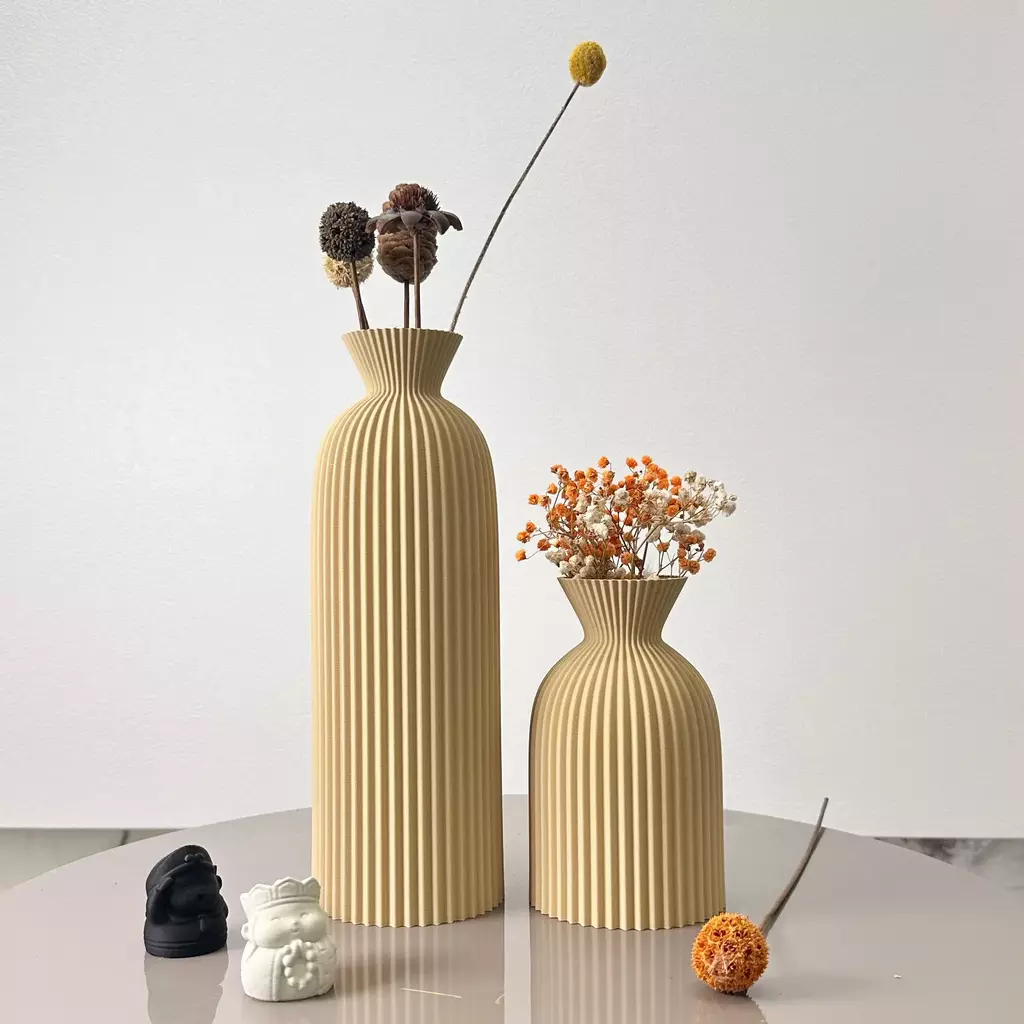 O Conjunto de 2 Vasos Decorativos com Padrão Ondulado é a escolha perfeita para quem busca harmonia entre design moderno e delicadeza natural.